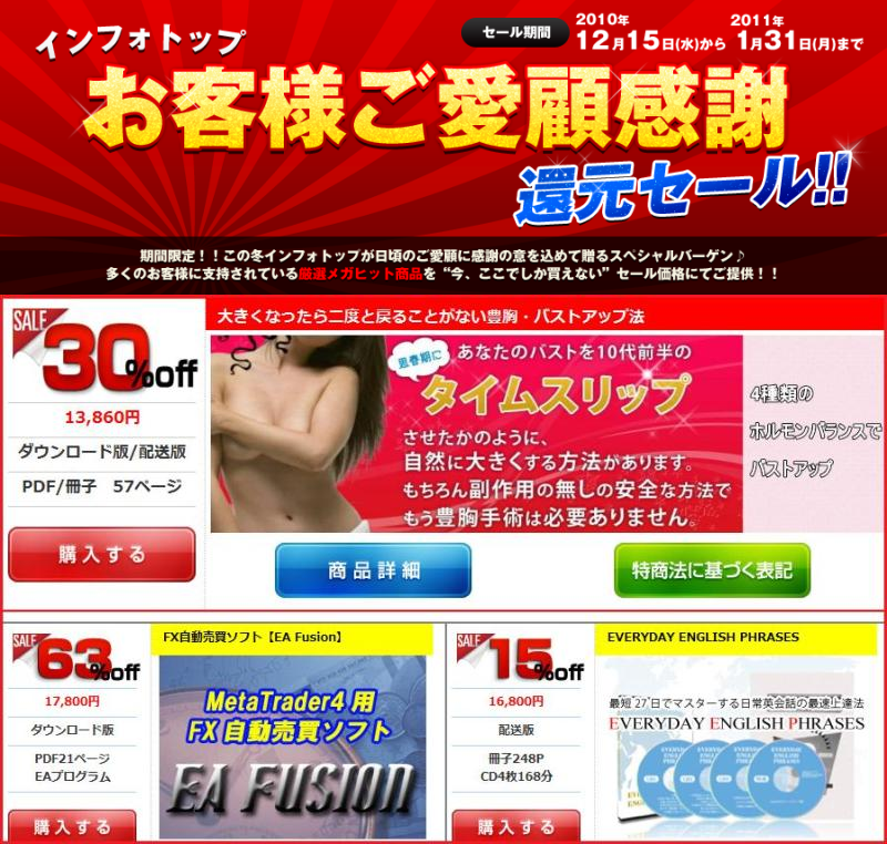 ⇒インフォトップお客様ご愛顧感謝「還元セール」の